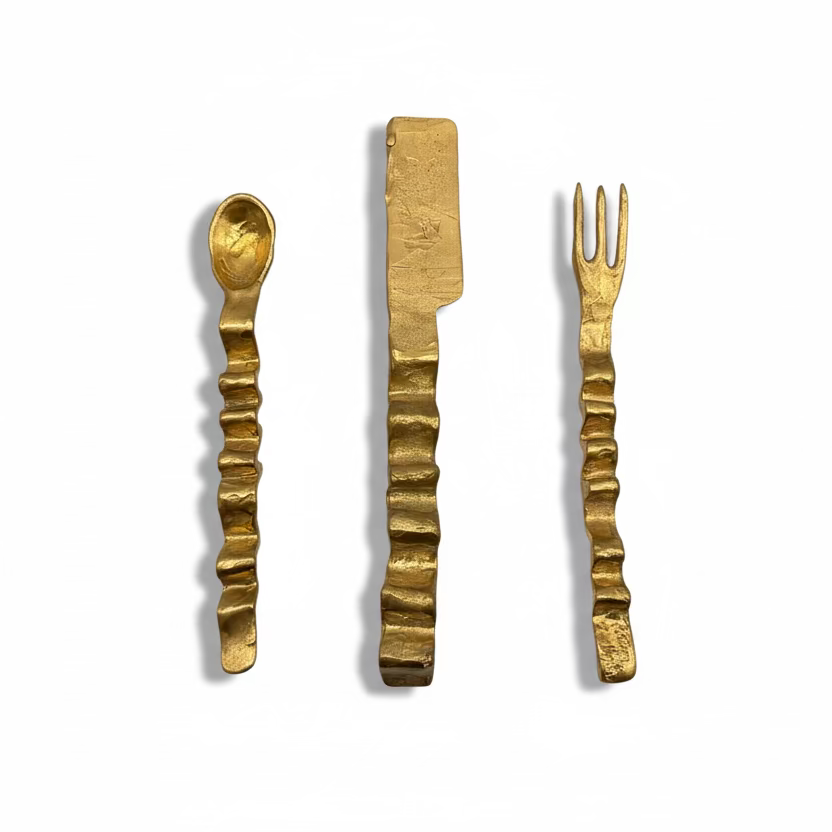 Posate di design materiche per arredare la tavola, che rendono la mise en place prestigiosa ed elegante, con valore, stile e personalitĂ .